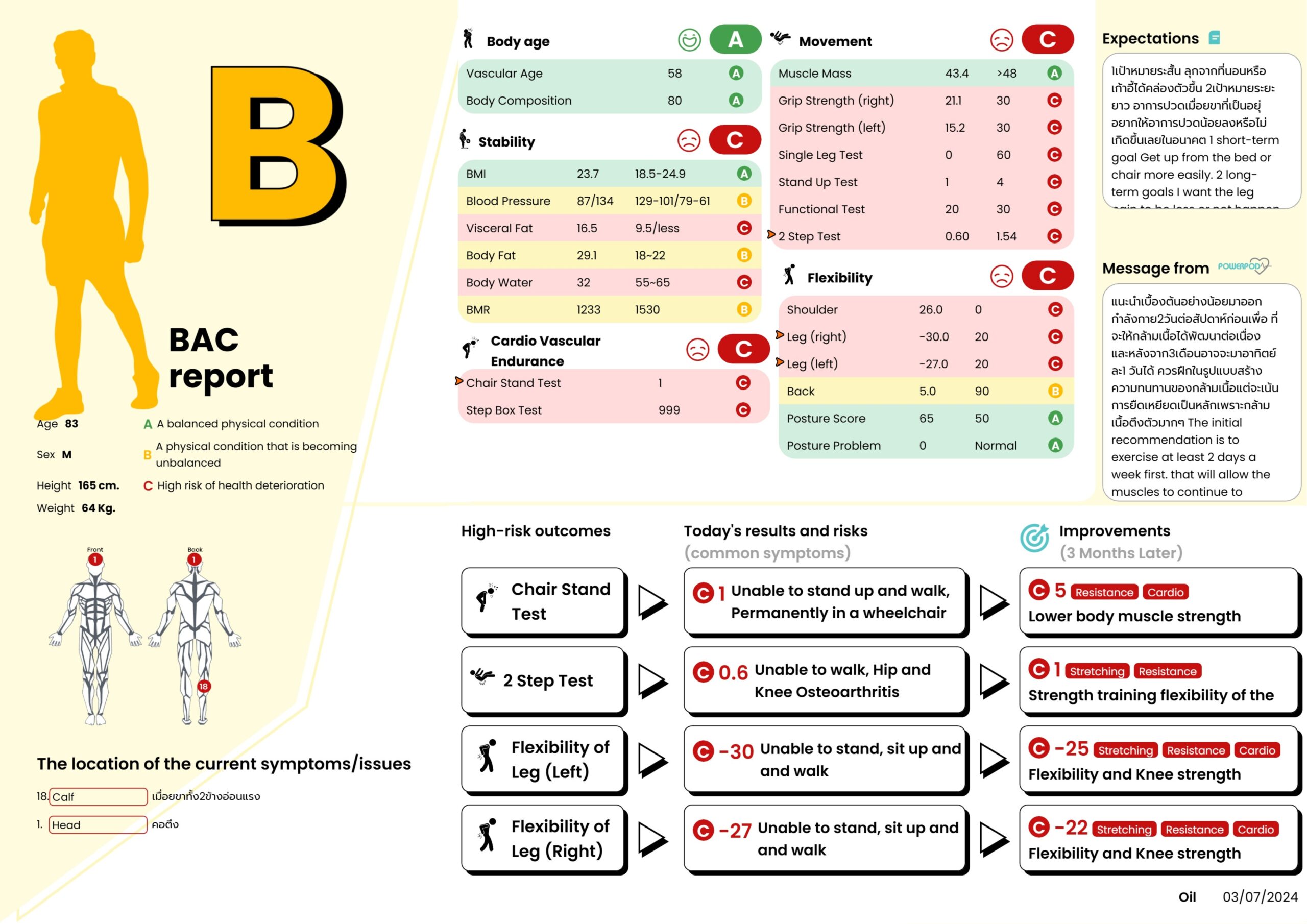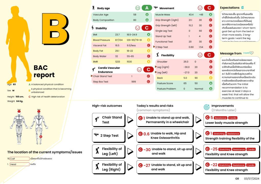 The body age assessment program evaluates your overall physical health by determining how old your body appears compared to your actual age. It provides a clear picture of your strength levels, muscle balance, and metabolism, helping you plan targeted exercise routines and health care.